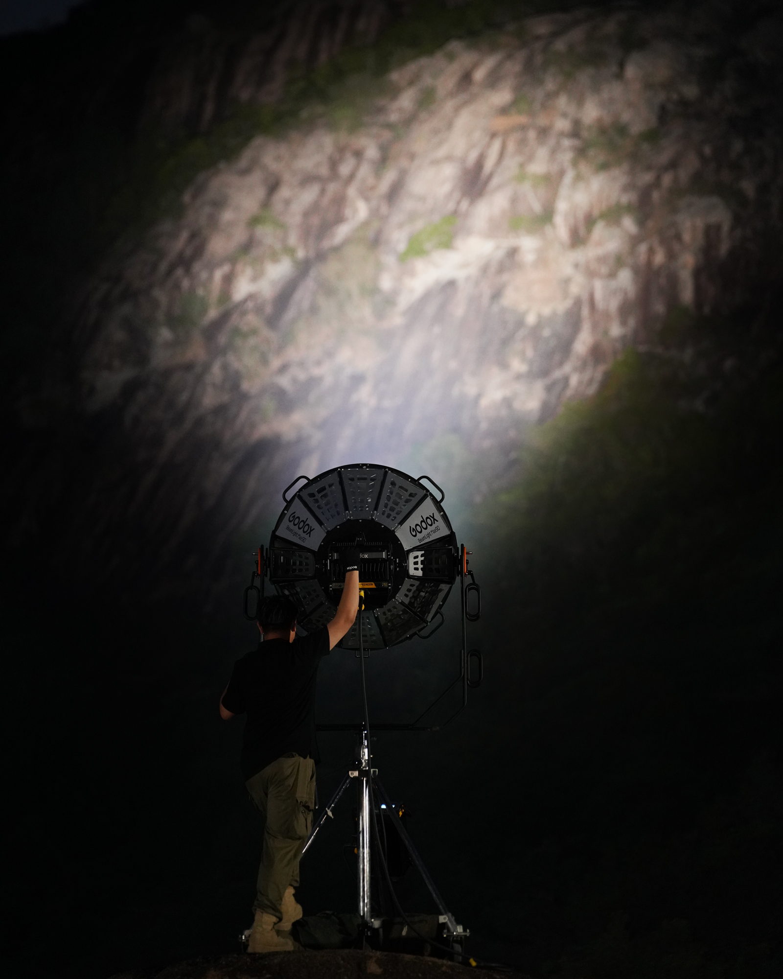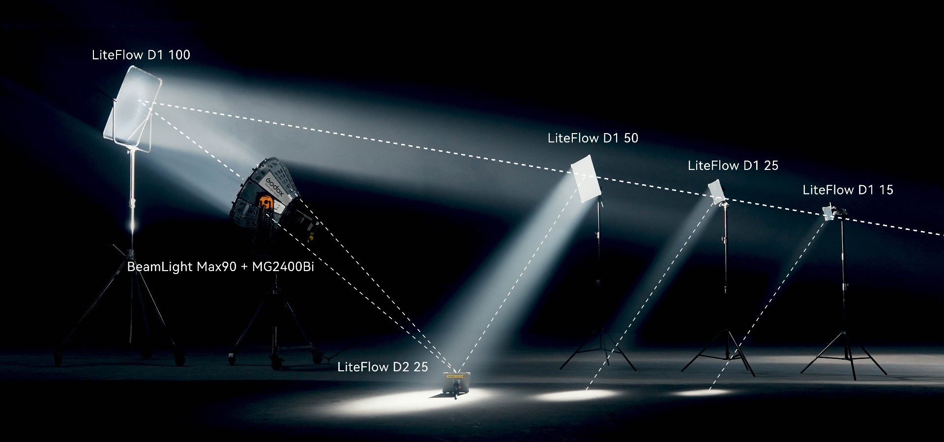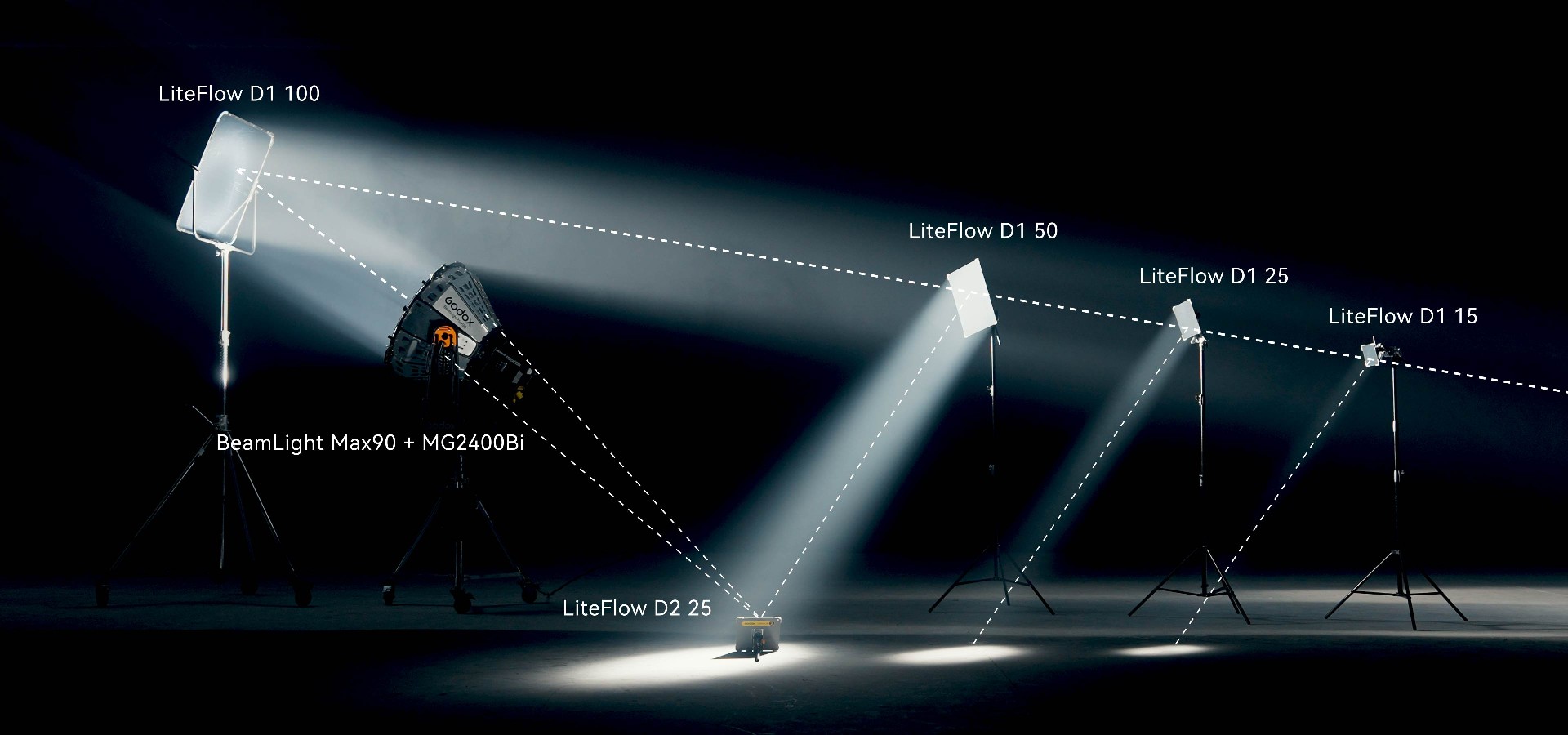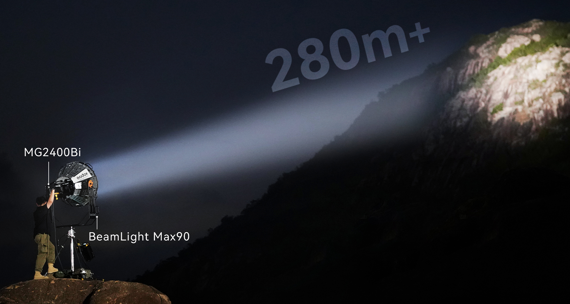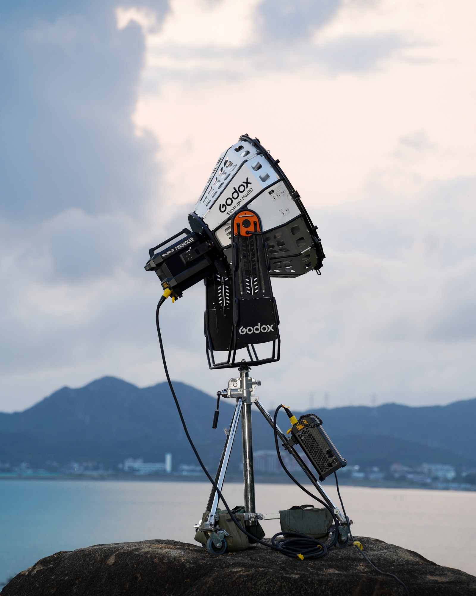 The BeamLight Max90 significantly enhances the throw distance and illuminance of G-Mount LED fixtures, such as the KNOWLED MG2400Bi and MG1200Bi. When combined with the MG2400Bi, it offers astonishing brightness comparable to traditional 12K HMI fixtures while reducing power requirements and simplifying setup, transforming on-set lighting dynamics.