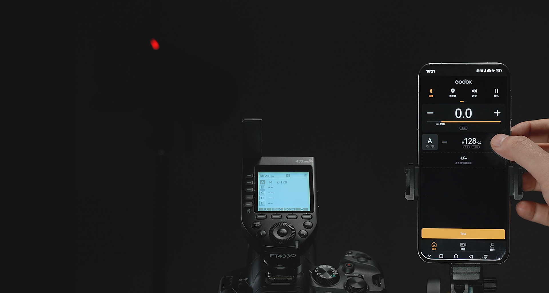 Wirelessly control the FT433 Trigger via Bluetooth through Godox Flash app, enhance your shooting experience from your iOS or Android device. Adjust flash mode, power levels, modeling lamp, beeper settings, and more—all remotely.