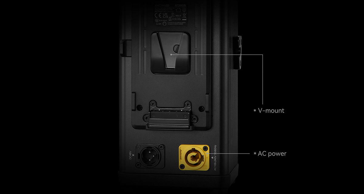 In addition to AC power, the AT200Bi also supports V-mount batteries, giving you the freedom to take it on the go for a shooting adventure.