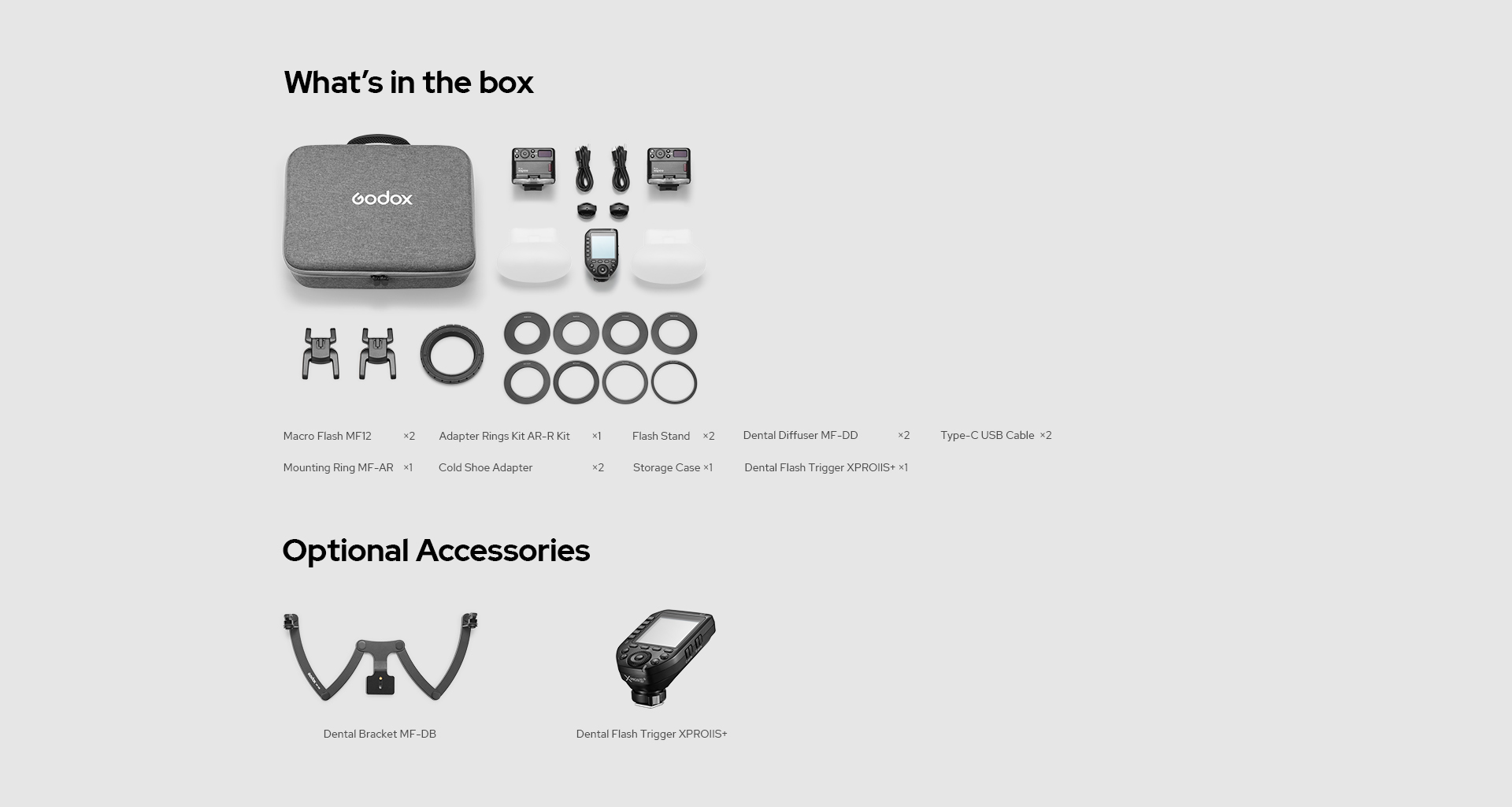 The MF12-DK1 includes all the accessories required for dental photography, saving you time and energy to get started. With special consideration for seamless compatibility among the accessories, this kit allows for higher efficiency and convenience during dental photography shooting.