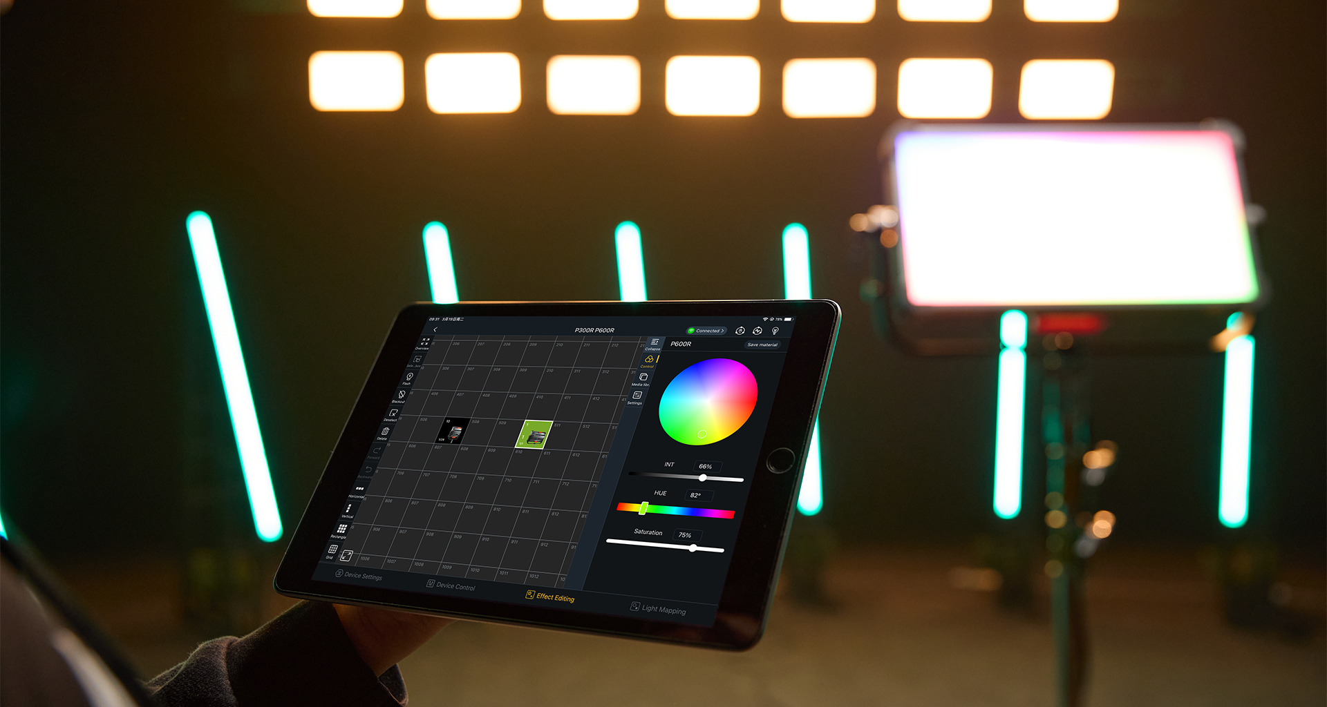 The P300R/P600R integrates smoothly with virtual production systems. When pixel mapping is paired with the Godox KNOWLED app, the lights can seamlessly match the dynamic lighting changes of virtual environments, allowing actors to blend more naturally with virtual settings and delivering a more authentic and striking visual impact. Offers Ethernet control for seamless integration with virtual production system connections.