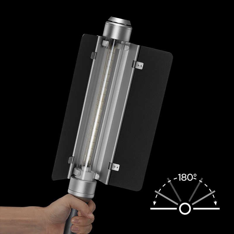 The AD-S200 features a 360° transparent light tube design, offering flawless coverage of light that fills every corner in complex settings such as cars, dressing rooms, and more. Moreover, harnessing its distinctive cylindrical lighting characteristic, the light wraps around your subject evenly, producing a soft and natural illuminance even without an additional modifier.