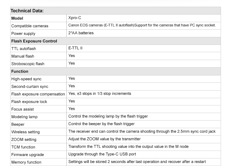 TTL Wireless Flash Trigger Xpro C/N/S/F/O/P