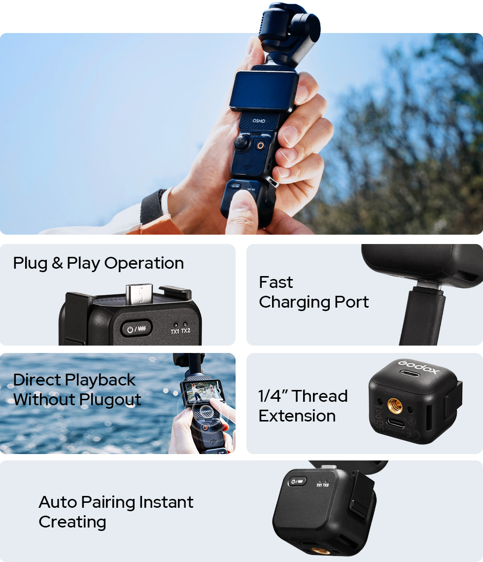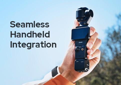 With its streamlined, dedicated design, Cube-OP3 receiver perfectly incorporates into the ergonomics of DJI OSMO Pocket 3, giving you a quick and smooth audio recording experience with just a plugin action.
