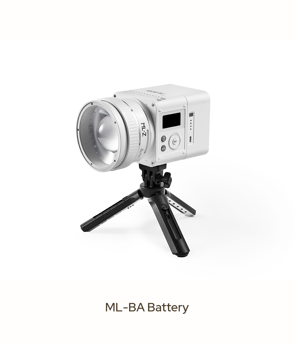Go cable-free and enjoy full freedom. With the ML-BA battery, the ML80Bi provides over 60 minutes of full-power output, allowing you to shoot anywhere, reposition lights easily, and maintain a clutter-free setup.