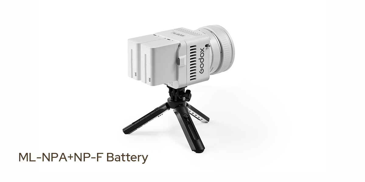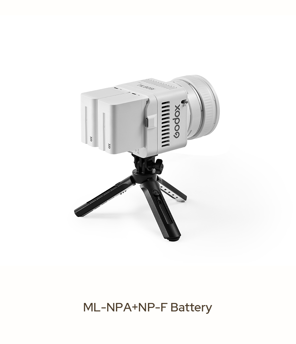 Beyond the ML-BA battery, cable-free functionality is available through NP-F and V-Mount batteries using ML-NPA and ML-VMA adapter plates.
