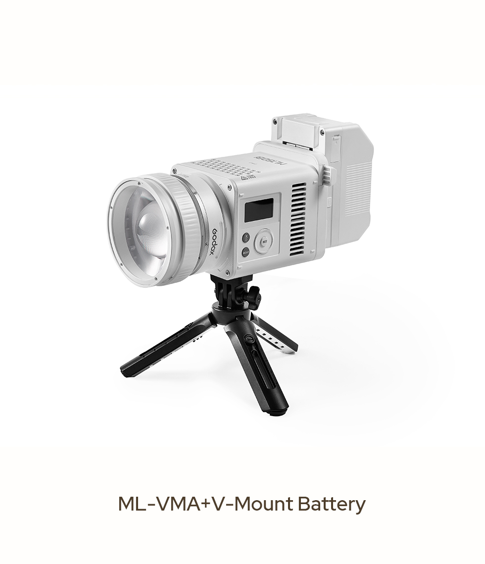 *To get the strongest output, pair the ML150Bi with the ML-VMA and a V-Mount battery.